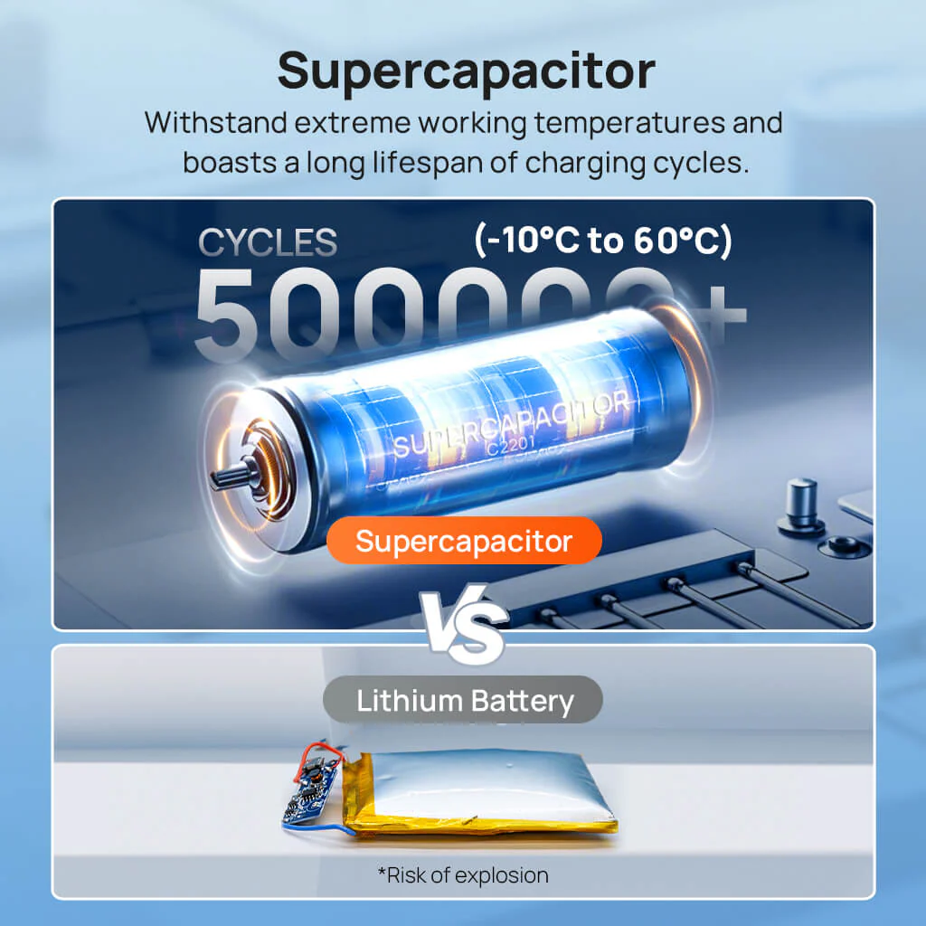 - ⚡ Super-condensateur résistant à la chaleur : fiabilité accrue même sous fortes températures.
