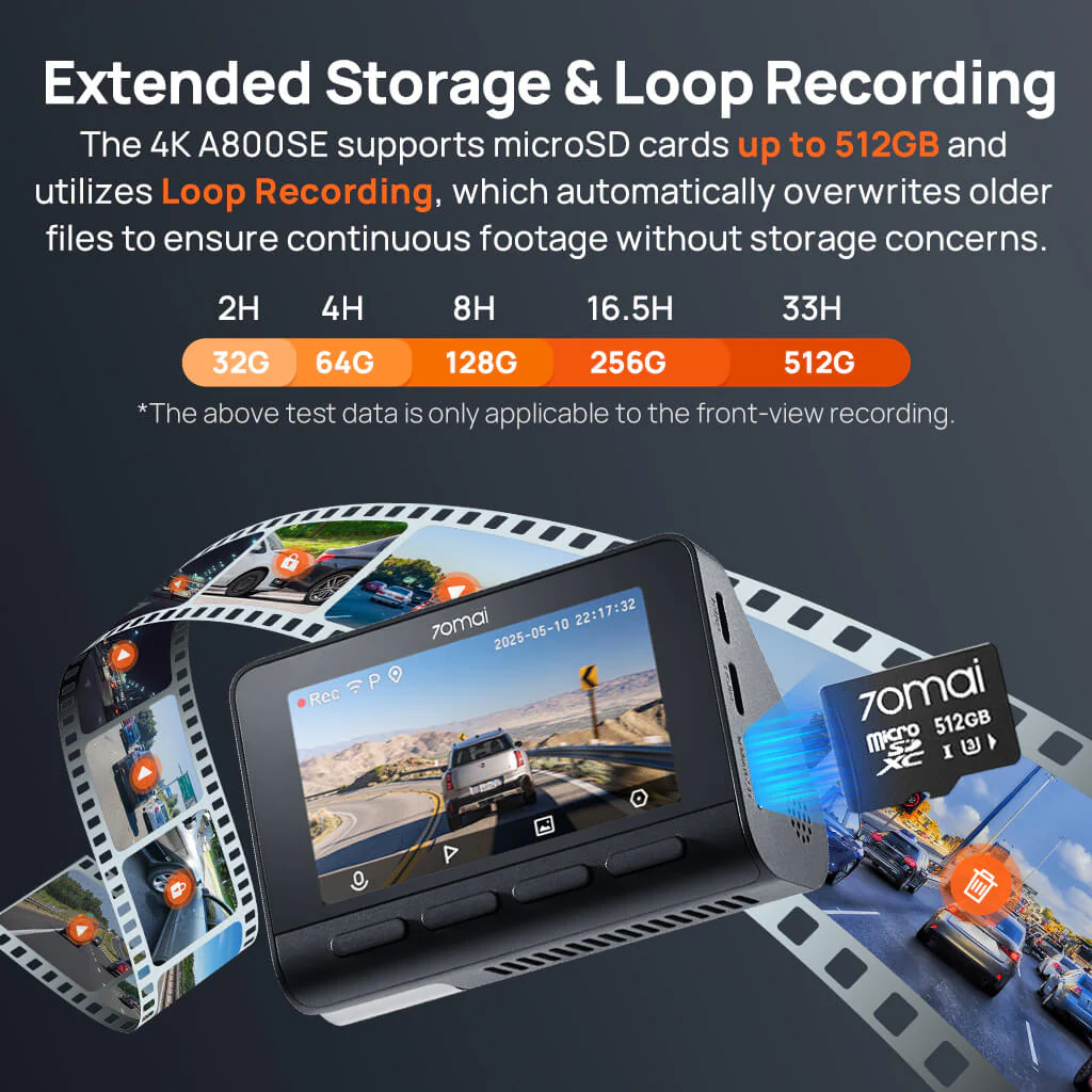 70mai Dash Cam A810 Avant & Arrière 4K HDR – Sécurité et Clarté Maximales