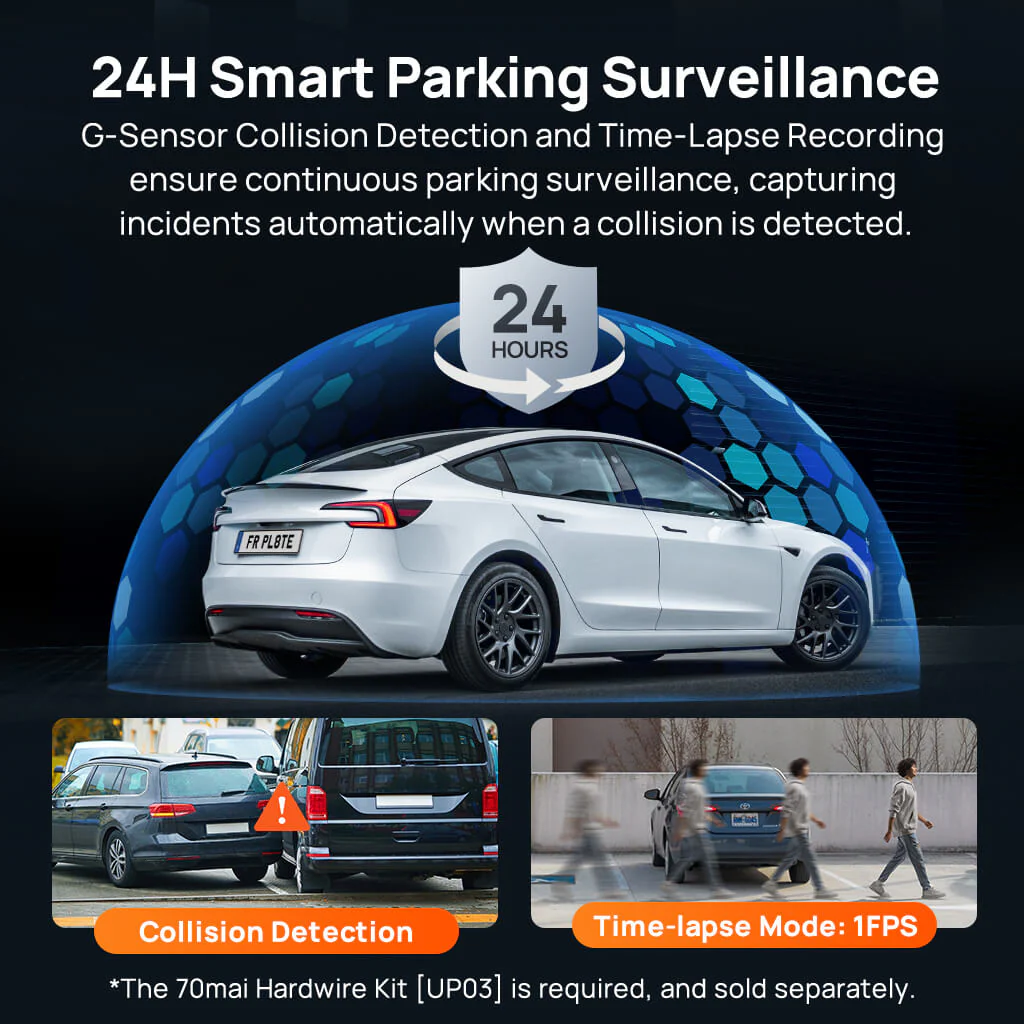 - 🚗 Surveillance parking 24 h/24 : nécessite le Hardwire Kit UP03.