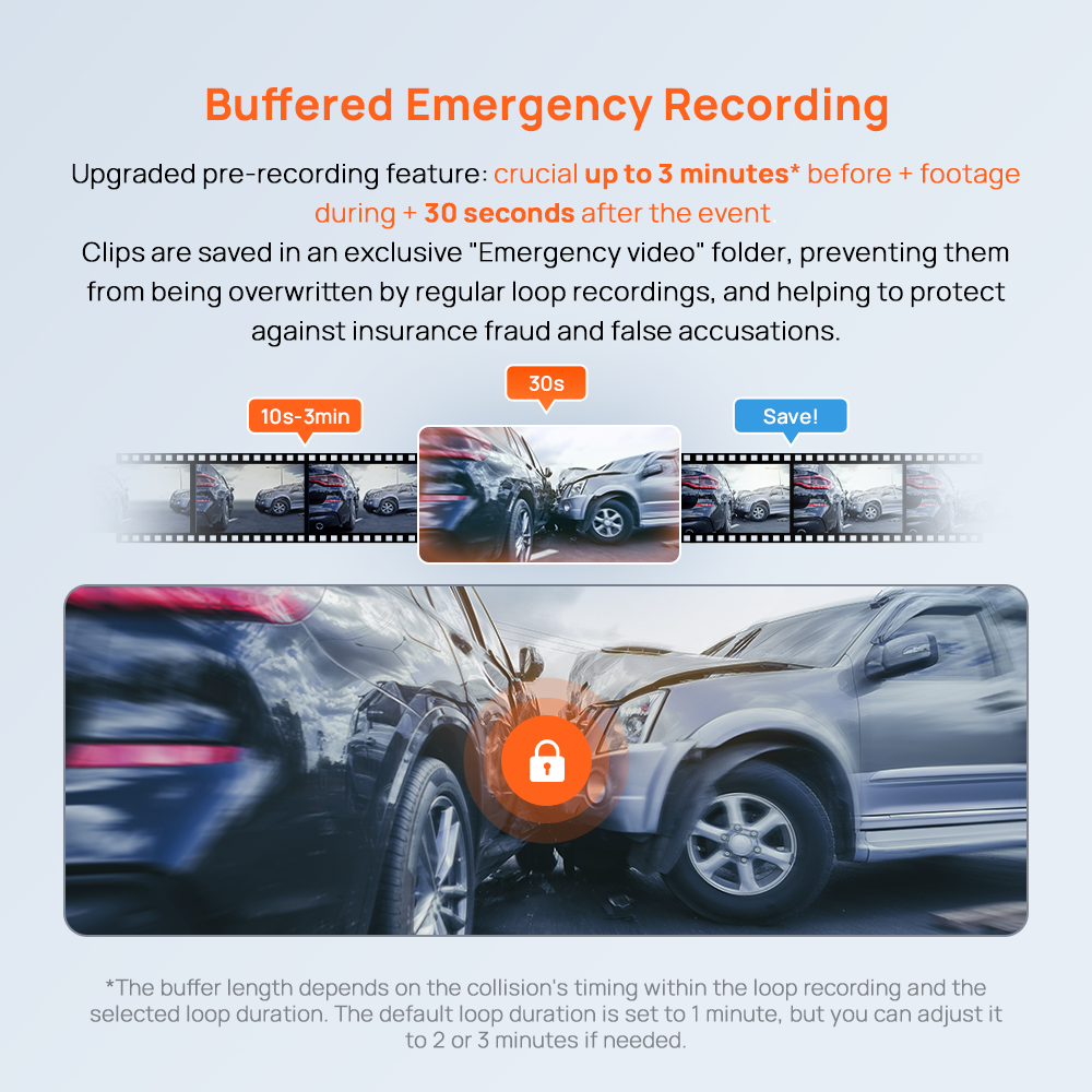 Enregistrement d’urgence : capture automatique avant/après un impact.
