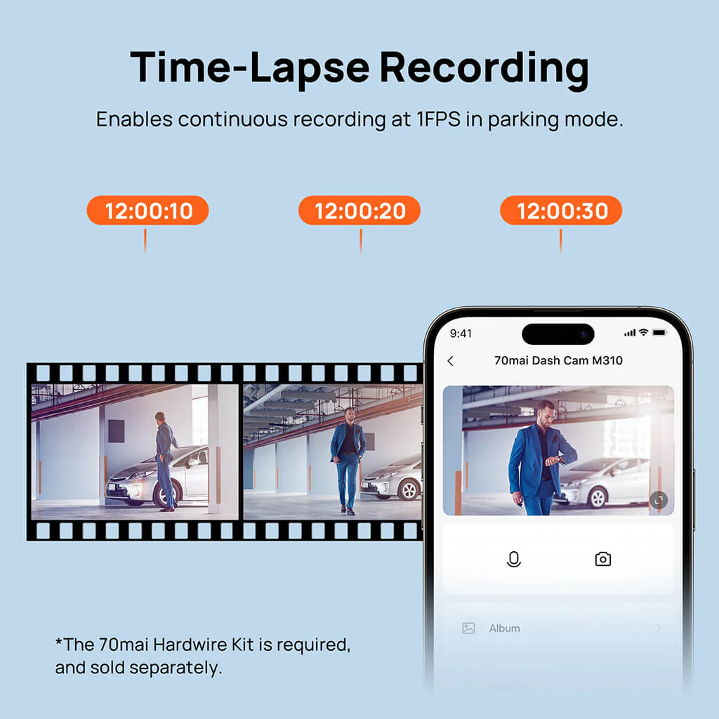🅿️ Mode Parking : surveillance 24h/24 même lorsque le véhicule est à l’arrêt (avec câble hardwire).