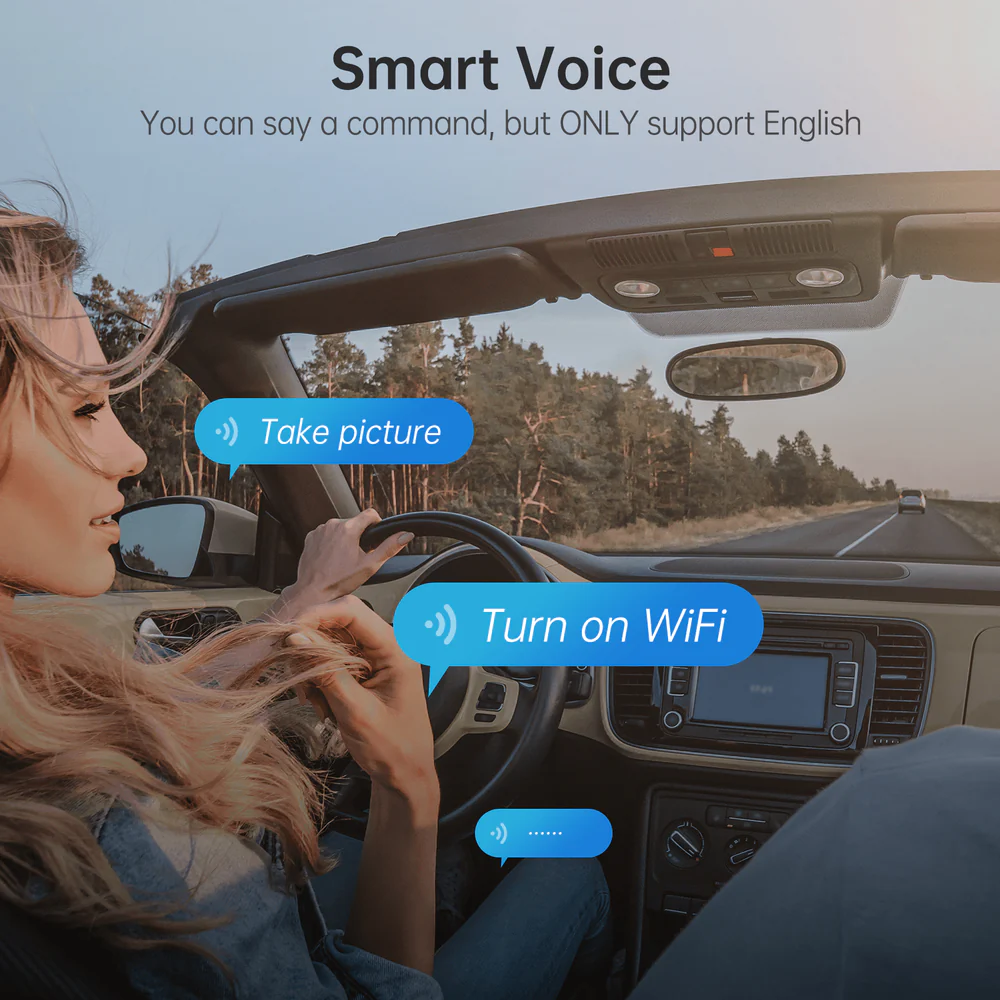 🔹 Commande vocale mains libres : Le modèle AZDOME M330 prend en charge 11 commandes vocales (en anglais uniquement), permettant à l’utilisateur de capturer photos et vidéos sans utiliser les mains.